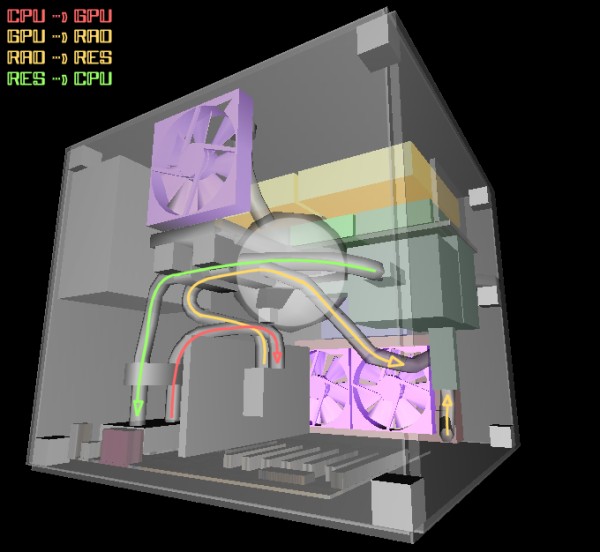 CPU -> GPU -> RAD - > Pump -> Res -> Pump